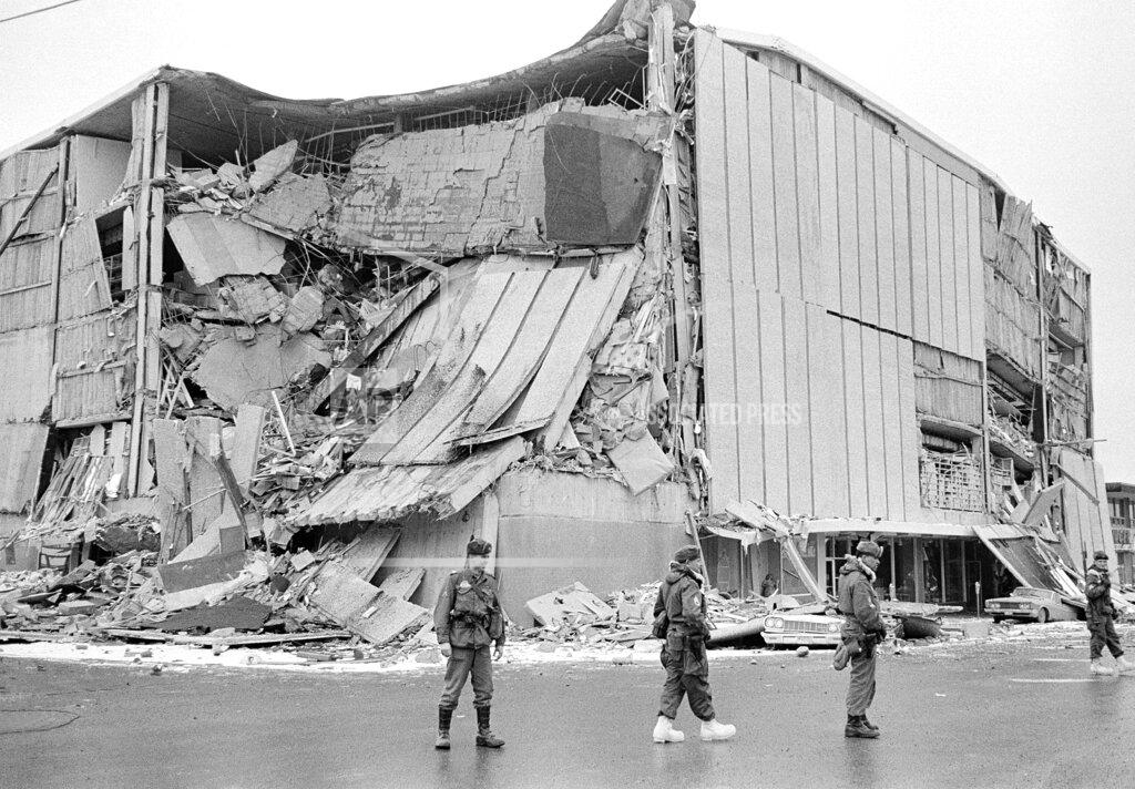 Troops patrolled a 30‐block area of downtown Anchorage through the day and night. No one was permitted to enter or leave the district after dark. Some large buildings in this section were swallowed up by deep fissures that opened in the earth. Others were tilted so dangerously that dynamiting was planned to avoid further danger.