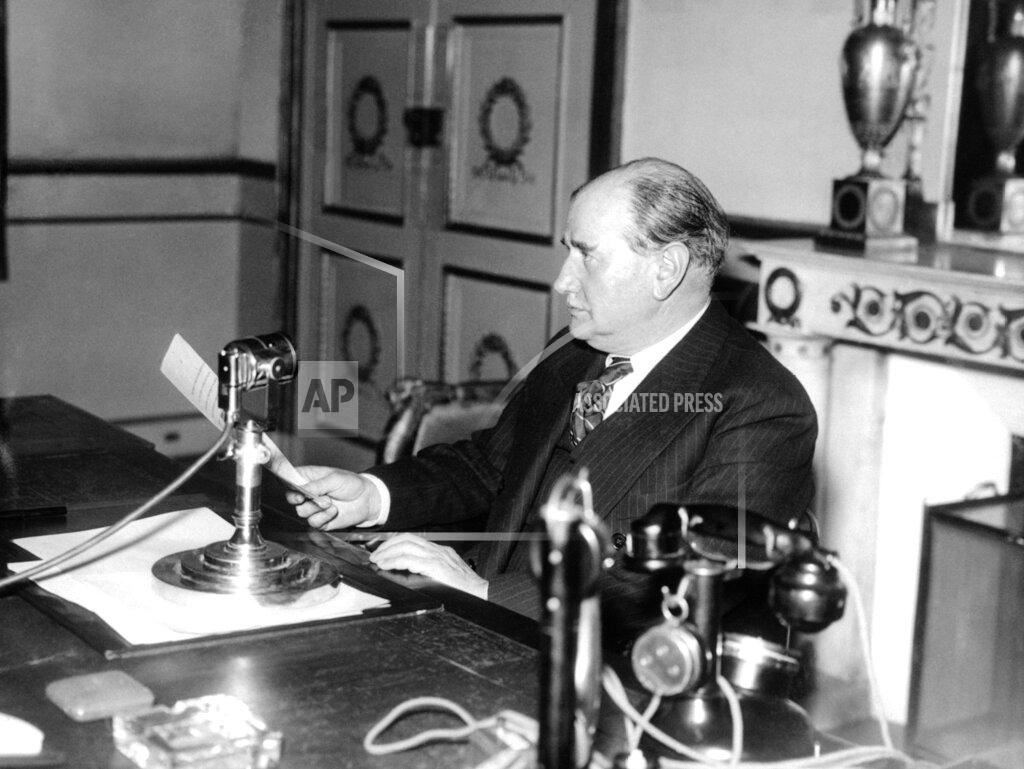 In jubilant Burgos a spokesman warned the democracies to keep hands off Spain. General Franco’s Interior Minister and brother-in-law, Ramon Serrano Suner, announces the fall of Madrid and warns the world’s democracies to “keep their hands off Spain.”