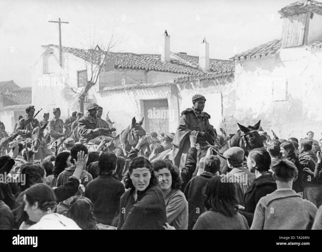 Falangists came out of their hiding, rose against the Republicans, and forced the surrender of Alicante. In the evening Cartagena submitted. Albacete was the last important town to go over. The civil population rose against the Republican garrison and forced their surrender. Then they told Burgos by wireless that they would receive Franco’s troops. So, without bloodshed roughly a third of the country went over to Franco yesterday, and last night in nearly all the cities, towns, and villages the red and gold-flag of Nationalist Spain was flying. The revolt that Franco began in July, 1936, was over.
