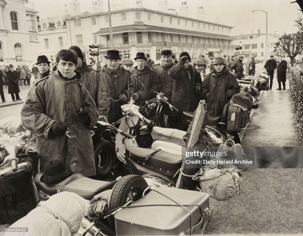 In Clacton-on-Sea, it was “Mods” against “Rockers” and the police against both as the quiet seaside town of 28,000 exploded with teenage violence during the Easter weekend. Britain had not seen anything like it in years. Everyone in Clacton, from the bobby patrolling near a shattered amusement arcade to a hotelkeeper who had bolted his doors against the “hooligans,” was asking why. The “Mods” or “Moderns” wear sharply cut Italian‐style suits and long, pointed “winklepicker” shoes. They ride motor scooters fitted with scores of gleaming accessories.