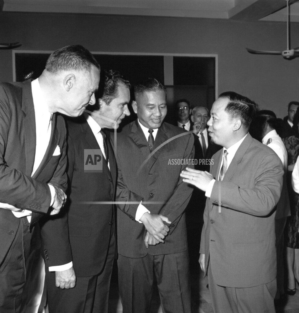 Richard M. Nixon said today that neutralization of Vietnam, or a withdrawal of United States forces from the country, would insure a Communist victory. The 1960 Republican Presidential candidate, who flew to the battle‐weary South Vietnamese countryside, said that those who talked about such moves “should come here and see these children and their elders — people who just want to live in peace.” Standing beside the United States Army helicopter that brought him to the beleaguered hamlet of Vĩnh An, 30 miles southwest of Saigon, Mr. Nixon declared that his trip to South Vietnam had reinforced his belief that the United States was “properly committed to help these people.” Mr. Nixon’s comments appeared to reflect guarded approval of the policies enunciated recently by Secretary of Defense Robert S. McNamara.