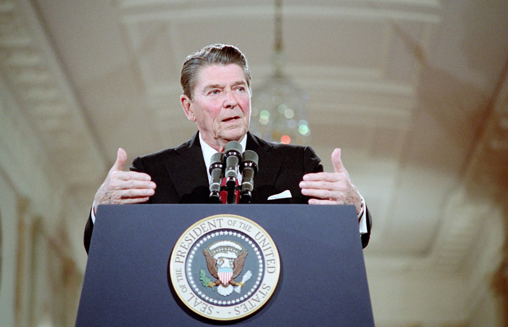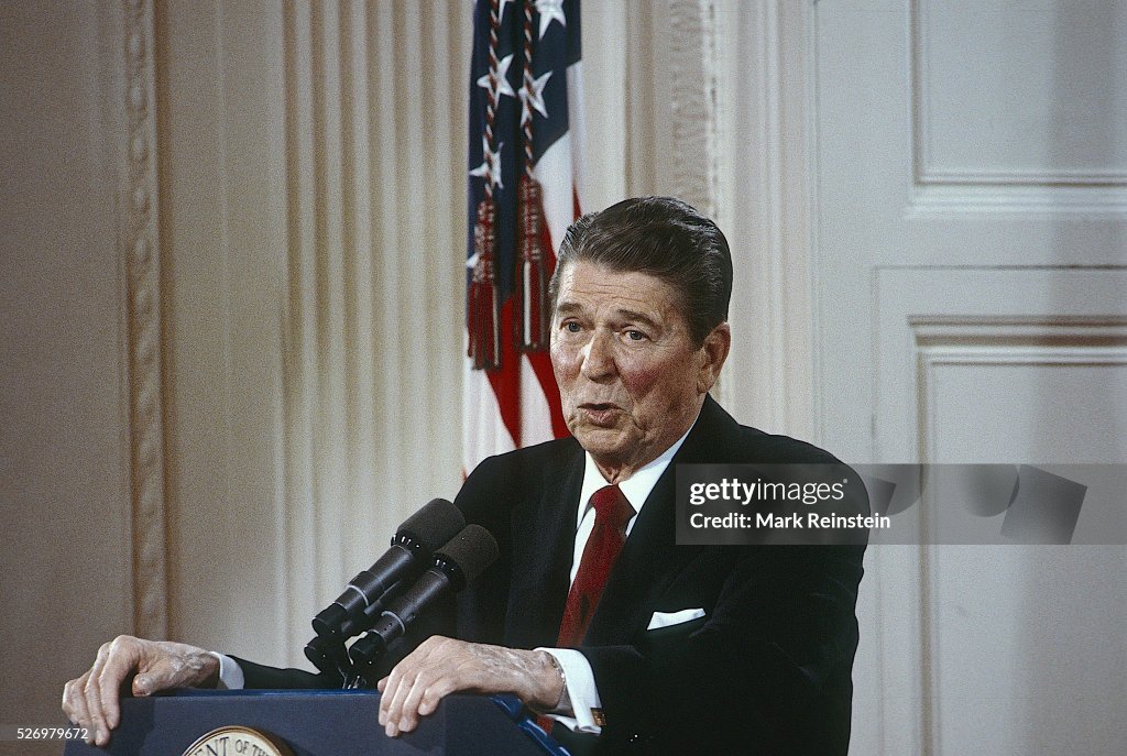 President Reagan participates in his 23rd press conference. The President challenged Congress on a broad range of foreign and domestic issues. Mr. Reagan, in a televised news conference, repeatedly criticized the legislators for their role in such issues as Lebanon, aid for El Salvador, restrictions of the War Powers Act, prayer in public schools, his fairness toward the poor and the “sleaze factor” accusations being made against his appointees by Congressional Democrats.