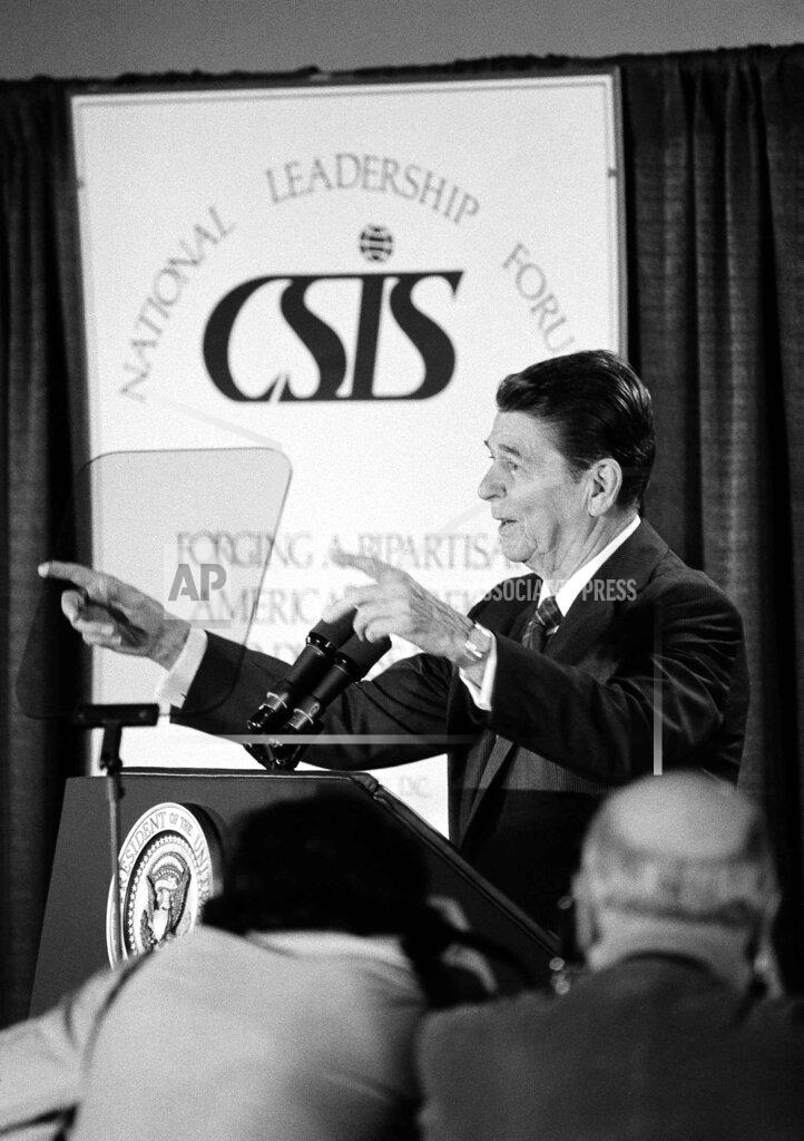 President Reagan presents a major foreign policy speech to the Center for Strategic & International Studies at Georgetown University. President Reagan criticized Congress for what he said was its reluctance to support the use of military force to advance foreign policy goals. His criticism in a speech at Georgetown University was the latest in a series of Administration complaints that Congress bore considerable responsibility for recent foreign policy problems. Mr. Reagan called for a “bipartisan consensus in support of U.S. foreign policy.”