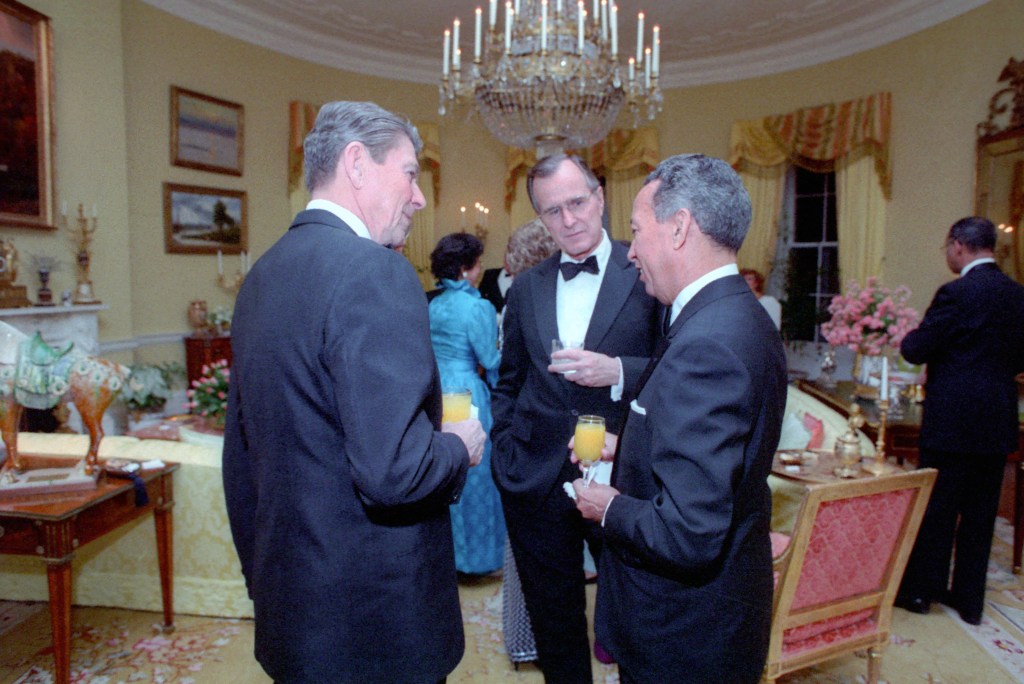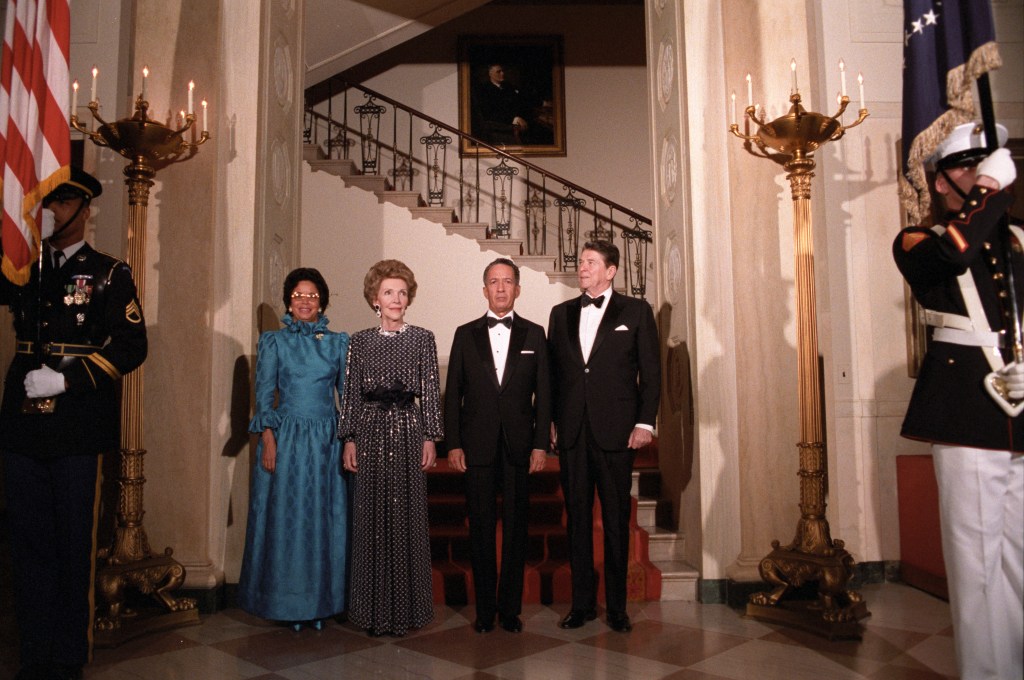 The President and First Lady attend a State Dinner in the honor of their guests President and Mrs. Salvador Jorge Blanco.