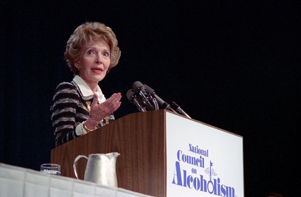 Reagan’s reading was interrupted briefly by a handful of demonstrators brandishing a banner and shouting “bread not bombs” from a walkway at the top of a block of seats to the President’s extreme right in the cavernous Washington Convention Center. Reagan suggested that “it would be nice if a little of that spirit would rub off and they would listen,” then fell silent for about 90 seconds while security men wrestled with the demonstrators and hustled them out of the hall.