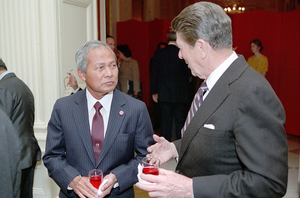 President Reagan meets with Prime Minister Tinsulanonda of Thailand.