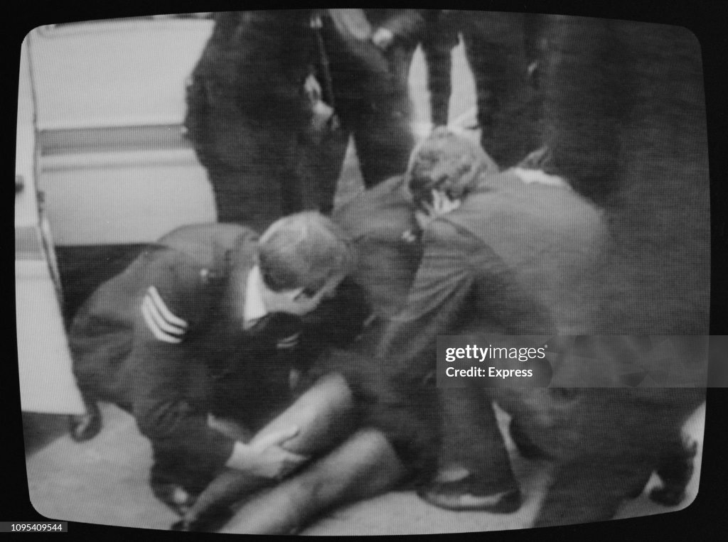 While the demonstrators were moved into Charles II Street, Fletcher was aided by her colleagues; as she lay in the road outside the People’s Bureau, she advised them to “keep calm”. She was moved to Charles II Street; she became unconscious and stopped breathing and a colleague gave her resuscitation. At 10:40 am an ambulance took her to Westminster Hospital. As she was being transferred from the ambulance to a hospital trolley, a single spent round of ammunition fell from her uniform. She was operated on, but died at approximately midday.