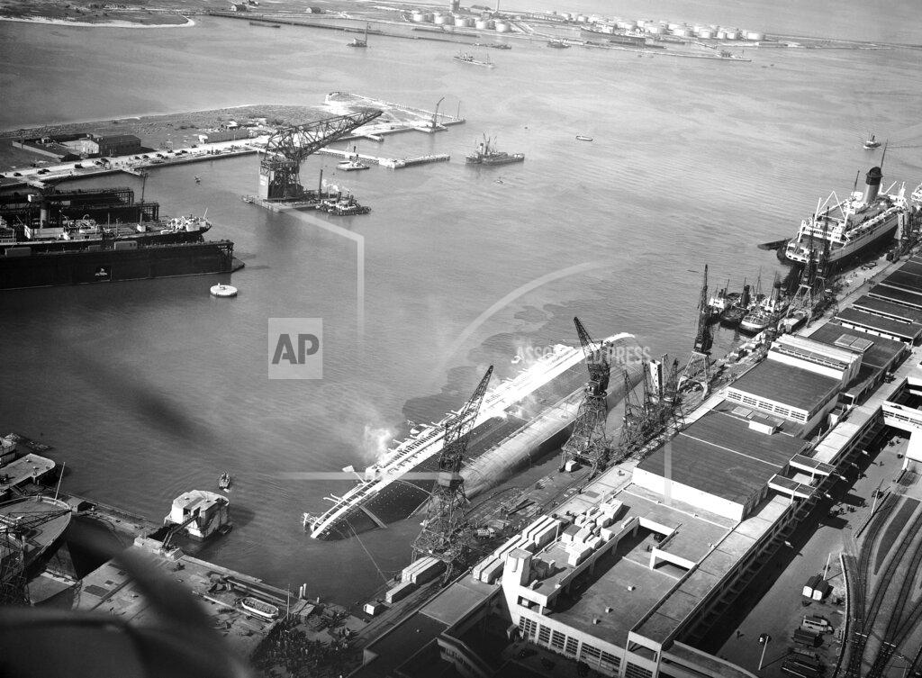 The Royal Navy Dido-class light cruiser HMS Bonaventure (31) is launched by the Scotts Shipbuilding & Engineering Co. (Greenock, Scotland).