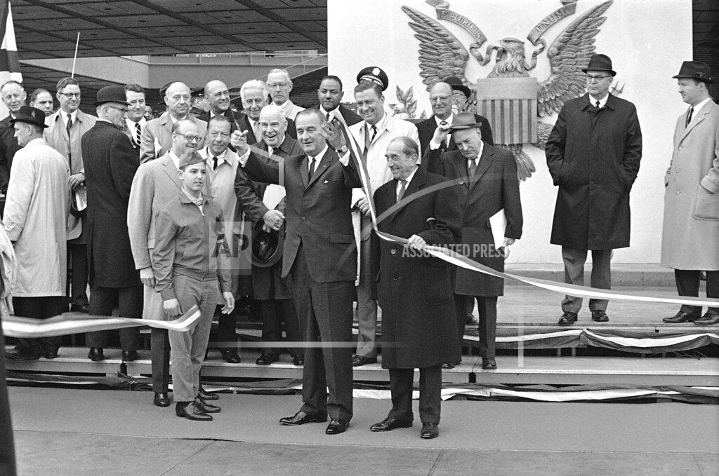 The New York World’s Fair was opened by President Johnson on schedule yesterday, despite the double obstacle of foul weather and civil disobedience. Massive demonstrations that had been threatened by civil rights groups outside and inside the fair failed to materialize. A few hundred Black and white activists did, however, distract and disturb the crowds during the colorful premiere of the great exposition. A band of youthful pickets and sit‐ins assailed President Johnson with rude shouts when he dedicated the Federal Pavilion. It rained most of the morning, and it was cloudy and chilly the rest of the day. The grim, November‐like weather, combined with the fear that integration activists might block access to the fair, undoubtedly kept thousands away. Attendance was 92,646, with 63,791 paid. An attendance of at least 250,000 had been forecast.