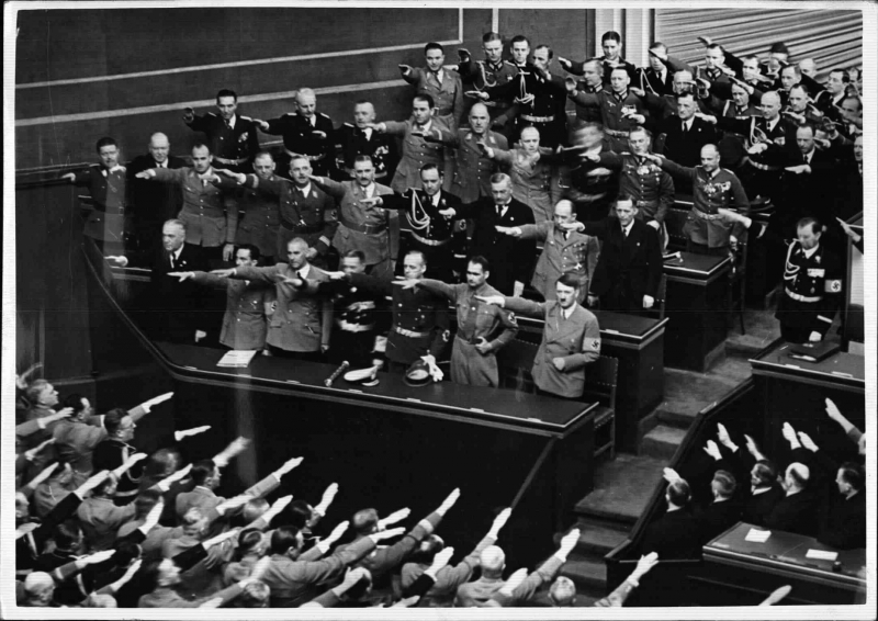 Hitler made a speech to the Reichstag, meeting in the Kroll Opera House in Berlin, renouncing the Anglo-German Naval Agreement and German–Polish declaration of non-aggression, yet offered to negotiate new non-aggression pacts with any nations that asked for them. Hitler evoked laughter in the Reichstag by reciting, in exaggerated and sarcastic tones, the thirty-one countries that President Roosevelt had listed in the telegram of two weeks earlier. He officially renounces the Anglo-German Naval Treaty of 1935, which had restricted the German navy to one-third the size of the Royal Navy, as well as the German-Polish Non-Aggression Pact of 1934, accusing the British and Polish governments of attempting to “encircle” Germany. Chancellor Hitler also renewed his demands on Poland regarding Posen and Danzig and offered bilateral non-aggression pacts to the Scandinavian and Baltic states.