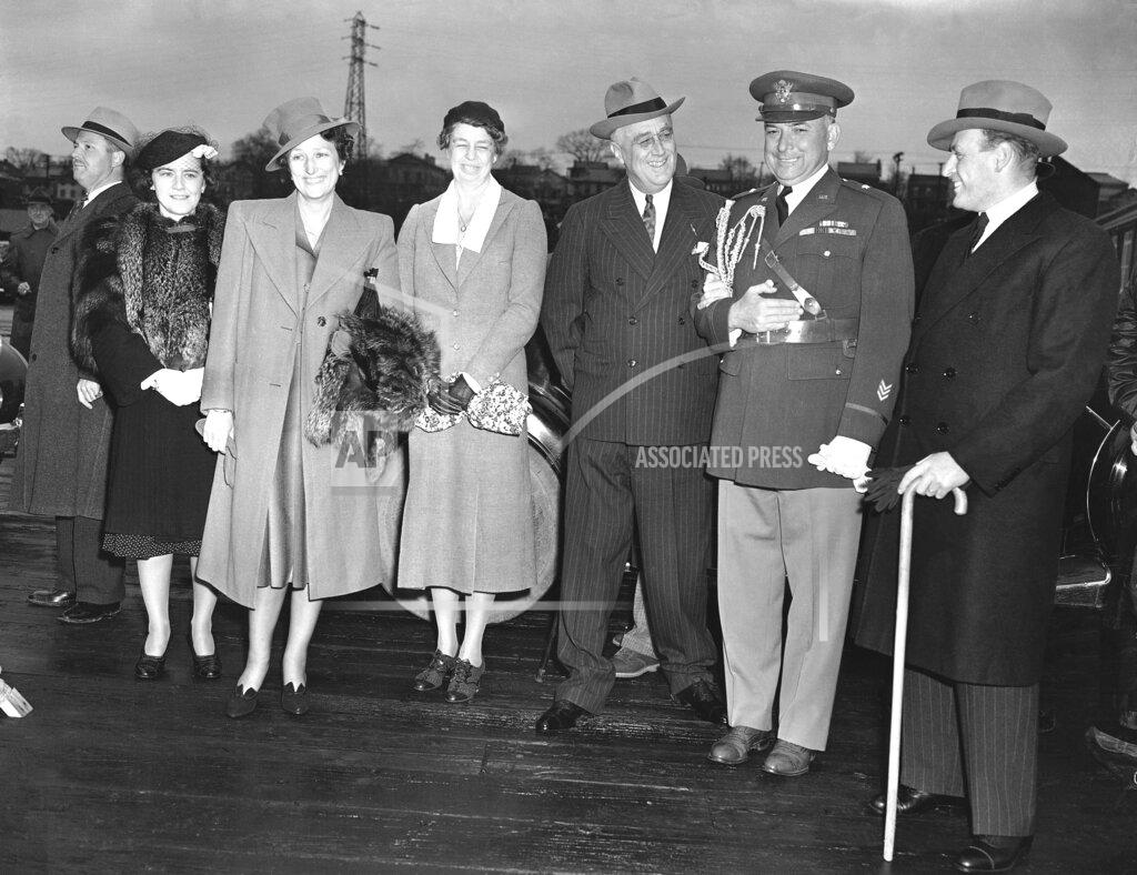 Fewer than fifty persons were within earshot of the exchange that followed, and some of it was missed entirely amid the hub-bub that followed the handshaking and picture taking of the President and Mrs. Roosevelt with the Princess Martha and Crown Prince Olav and their entourage as they debarked at a lumber yard dock at Poughkeepsie. Without waiting for a formal introduction to the royal couple by George Summerlin, chief of protocol of the State Department, the President extended his hand in greeting first to the princess and then to the prince, just behind her. Cameramen maneuvered for position while keen-eyed Secret Service operatives and local and state police kept back the crowds.
