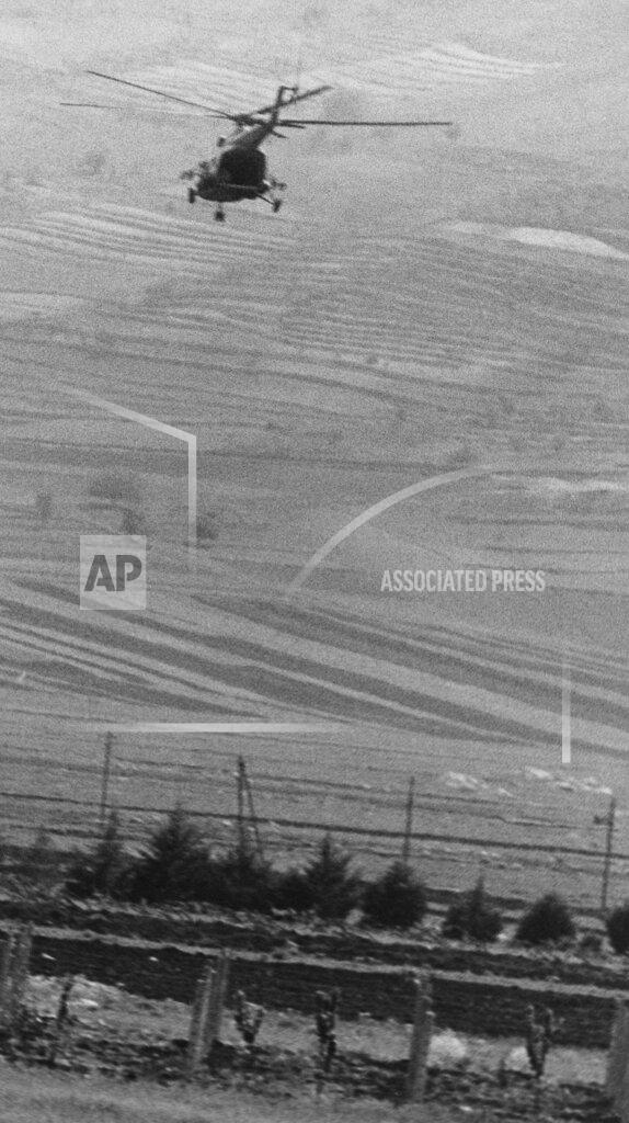 Large gray mushrooms, much the same color as the dirty snowfields on the mountain, blossomed as heavy bombs hit a saddle on the ridge. A few minutes later the whine of interceptor jets was heard approaching from Israel. Israelis said the Syrians had Used relatively slow MIG‐17’s to do the bombing, while supersonic MIG‐21’s flew protective patrols over them. The Israeli sources said that the Israeli planes had attacked the MIG-21’s and shot down four of them in a dogfight. An official announcement in Tel Aviv said that the planes had been brought down by cannon fire or air‐to‐air missiles. The statement said that eight MIG‐21’s took part in the battle but that more were in the air. Israeli jets bombed Syrian positions on the northeast ridge of the long mountain in the morning and afternoon.