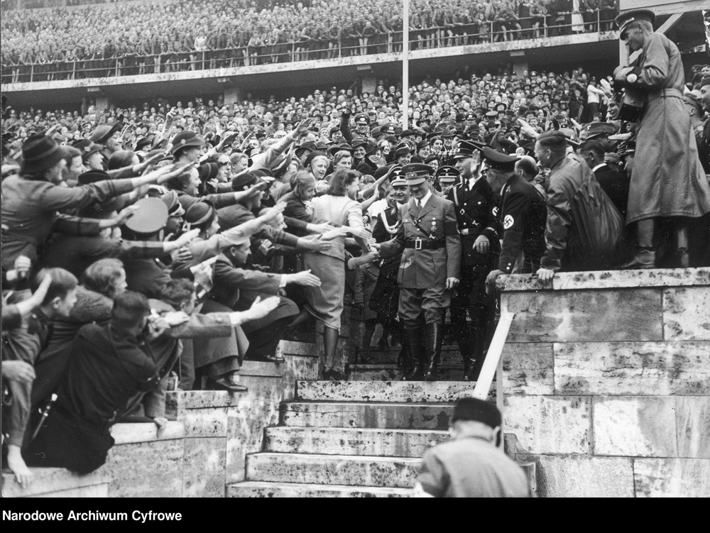 During May Day celebrations at the Olympiastadion in Berlin, Adolf Hitler spoke of an “international clique of war agitators” trying to encircle Germany and declared, “If we want to survive, we must be unified.” In May Day speeches today Chancellor Adolf Hitler assailed the boycott of German goods in the United States, appealed to labor for national unity and Increased production and denounced the “warmongers and panic-makers” of the democracies. The Chancellor spoke three times in programs that were part of today’s mammoth popular festival in Berlin, which was marked by parades throughout the day by 1,500,000 men, women and children and was concluded tonight by Maypole ceremonies in the Lustgarten.
