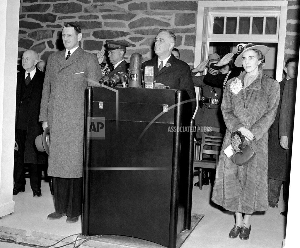 President Roosevelt dedicated a new Post Office in Rhinebeck, New York, just up the road from the President’s home in Hyde Park. Secretary Henry Morgenthau and Post Master General James Farley both spoke before FDR formally dedicated the building.