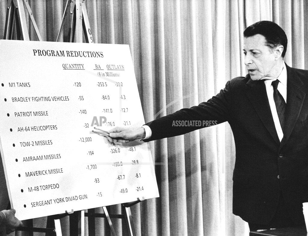 A military budget reduction plan was delivered to Congress by Defense Secretary Caspar W. Weinberger. The plan bows to bipartisan pressure to shrink the Federal deficit but saves the scope of the military buildup by stretching out purchases of conventional weapon programs. The plan would reduce the military appropriation for the fiscal year 1985 to $291.1 billion from $305 billion. This would bring 7.8 percent real growth in the military budget.