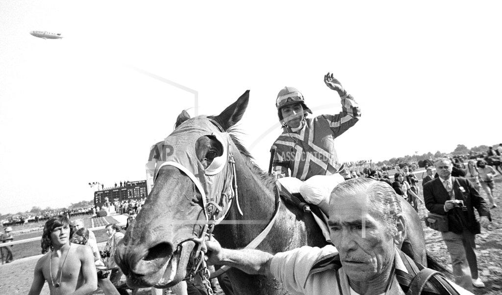 Cannonade, ridden by jockey Ángel Cordero Jr., won the 1974 Kentucky Derby, the 100th running of the event, at Churchill Downs in Louisville, Kentucky.