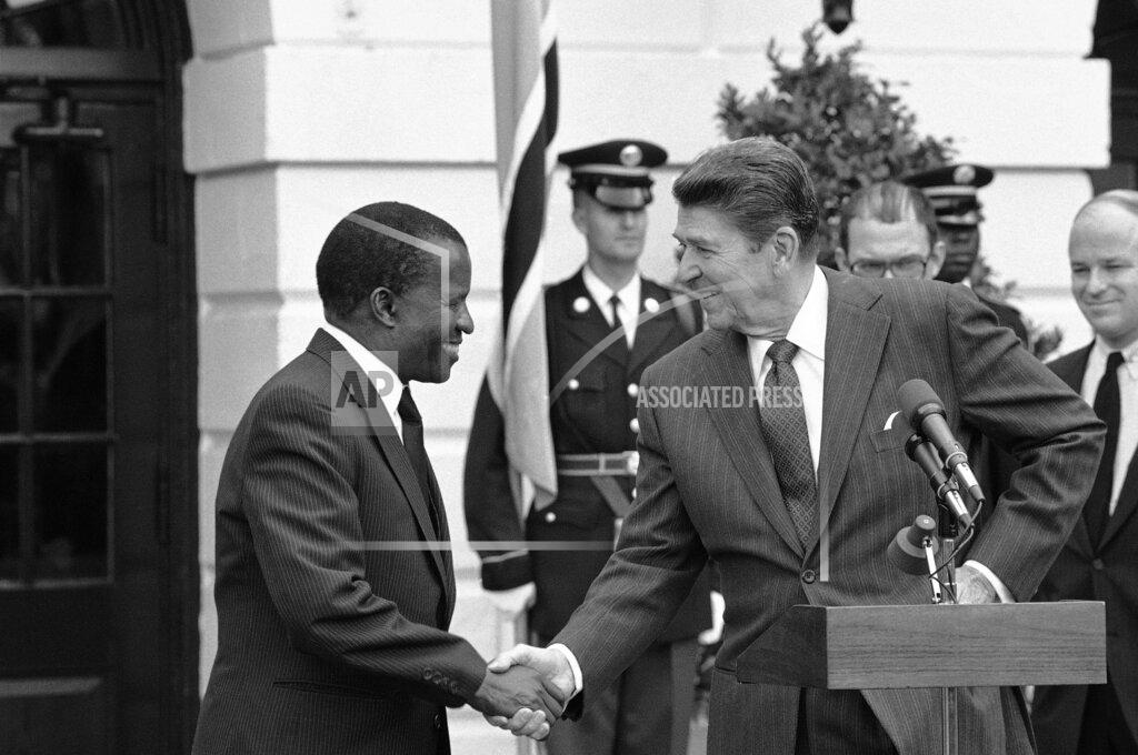 President Reagan receives President Masire of Botswana.