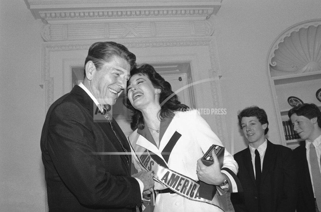 President Reagan meets with Mrs. America and her family. The president also awarded a gold medal posthumously to Joe Louis; his widow Martha accepted. Later in the afternoon he travelled to Camp David.