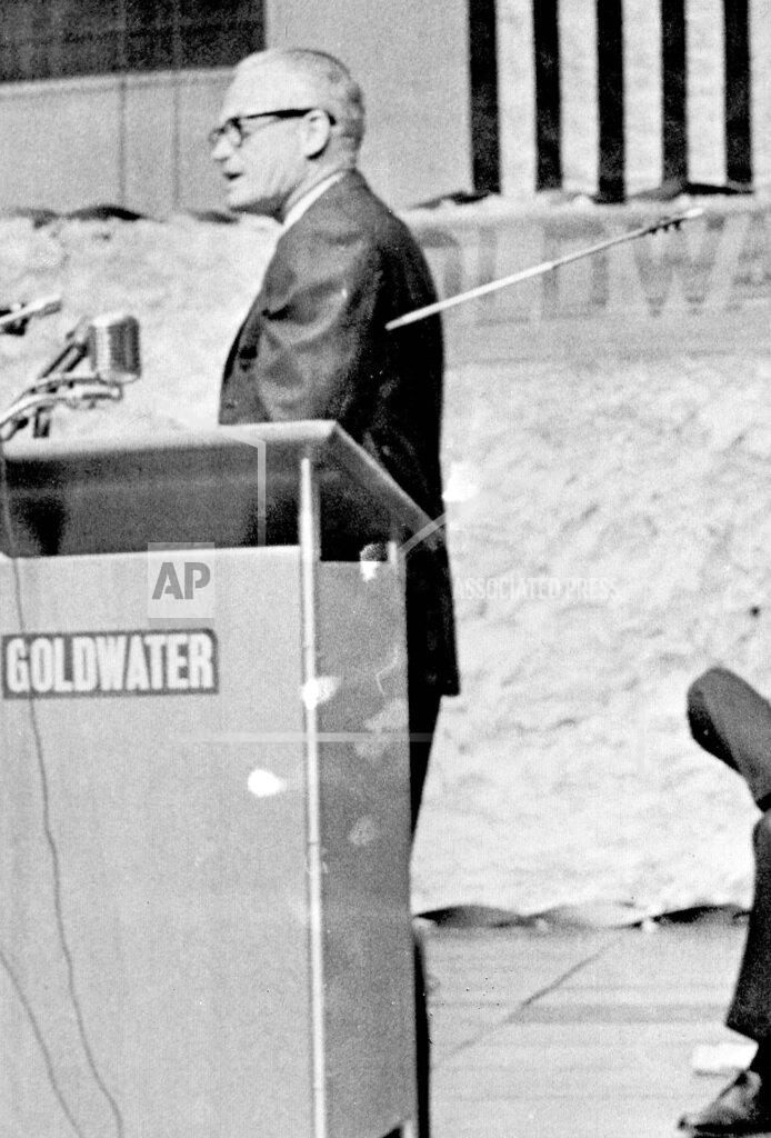 Senator Barry Goldwater said today that former President Dwight D. Eisenhower’s statement on the desirable qualities of a Republican Presidential nominee was “most timely and most welcome.” The statement, however, has been widely interpreted as a rebuff to the Senator, and it appears to have shaken his campaign for the vital California Republican primary on June 2. General Eisenhower’s viewpoint, in stressing loyal support for the United Nations, proud adherence to the Republican platform of 1960 and vigorous action on civil rights, appeared to imply that Mr. Goldwater was the least suitable Republican candidate. This morning, in a speech at Redding, California, Mr. Goldwater indulged in a joke. He tucked an arrow under his armpit so that it seemed to be imbedded in his back. He told his audience of about 1,000 persons that it illustrated “some of the problems I’ve had in the last few days.”