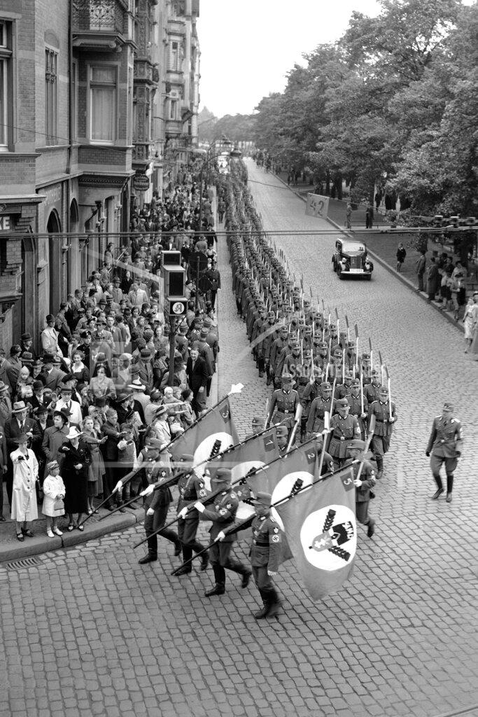 A quarter of a million war veterans assembled in Kassel — the greatest rally of former servicemen staged since the advent of the National Socialist regime — today gave thunderous approval to Chancellor Hitler’s defiance of what he termed British encirclement threats against Germany. The challenge was unequivocal and the response it evoked was no less emphatic.