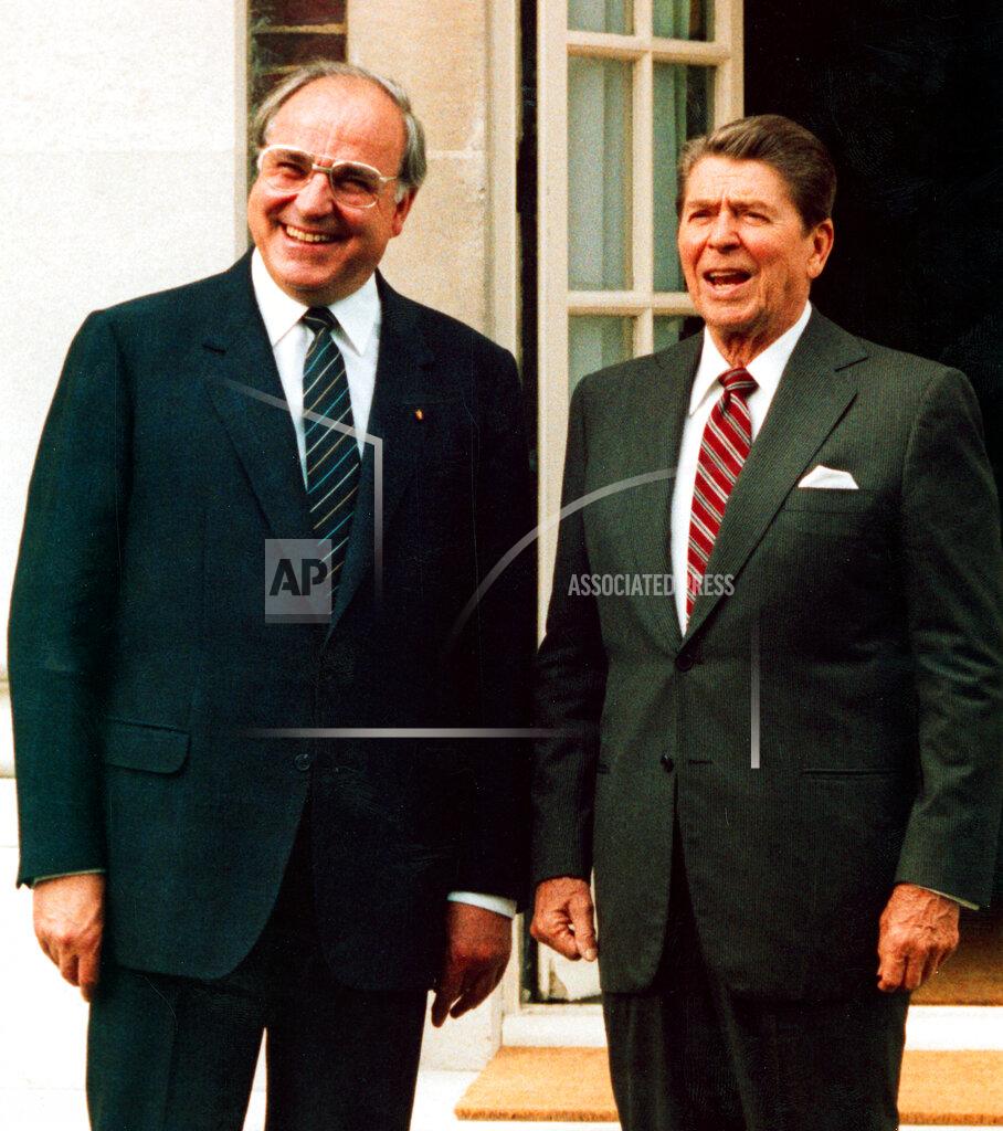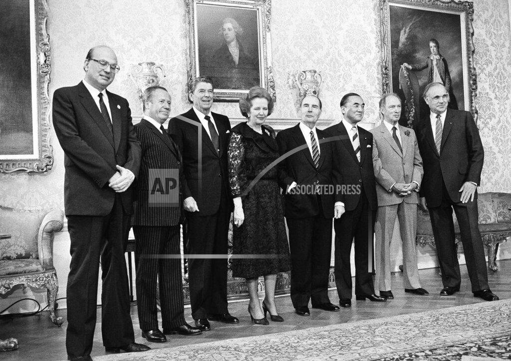President Reagan met separately today with the leaders of Japan, Italy, West Germany and France and gave fresh assurances that American interest rates would fall soon, perhaps this summer. Speaking to reporters at a picture-taking session at Winfield House, the Georgian residence of the American Ambassador here, Mr. Reagan said there could be “fluctuations” in interest rates, a comment that American officials interpreted as meaning that rates could rise somewhat before they fall. Asked if rates would come down in the summer, he said: “I’m going to stick with that prediction.”