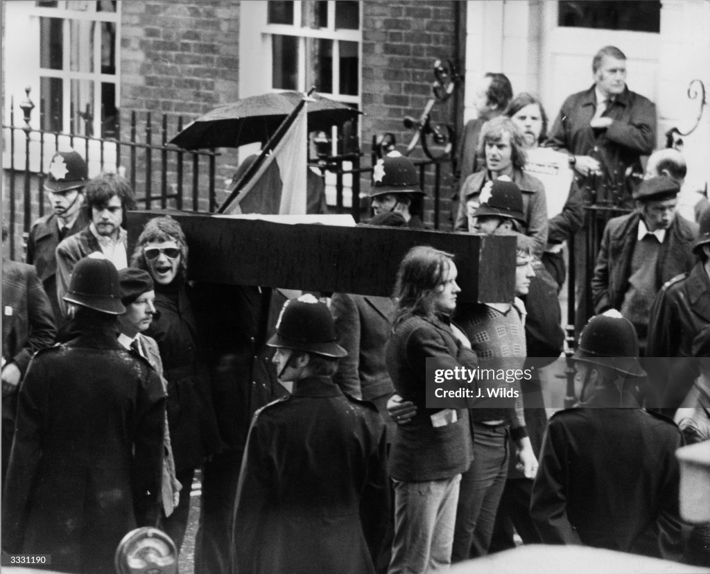 The President, accompanied by Mrs. Nixon, Secretary of State, Kissinger and aides, was smiling as he stepped into the rain from his plane to be welcomed by Chancellor Bruno Kreisky and the Foreign Minister, Rudolf Kirchschläger. He wore a tan raincoat but no hat. Mrs. Nixon emerged from the plane in a blue suit and white shoes, but no coat. In the rain, the American party then moved to a set of microphones on the landing strip of the Salzburg Airport. After welcoming remarks by Dr. Kreisky, Mr. Nixon spoke briefly of his purpose in making the trip: “Every nation in the world has a stake in maintaining peace in the Middle East and we trust that this journey, as that of two years ago, will contribute to peace not only in that area but throughout the world.”