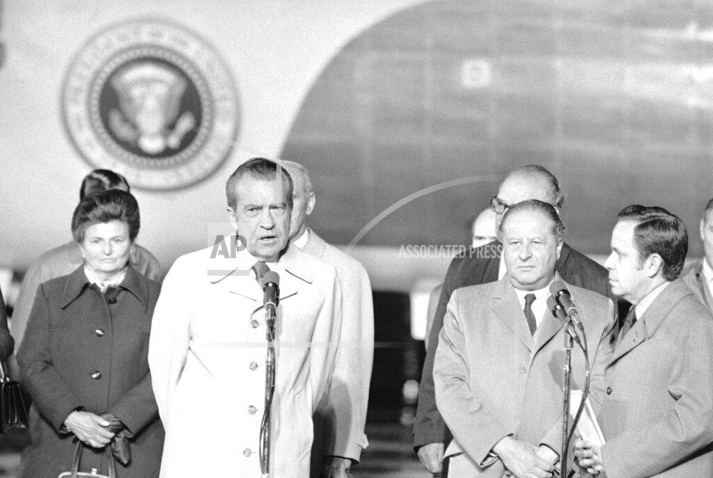 President Nixon arrived in Salzburg, Austria, tonight on his way to the Middle East, declaring that he is on a mission for peace not only for those nations directly involved but for the entire world. U.S. President Richard Nixon began a five-nation tour of Austria and the Middle East, as the presidential airplane, Air Force One, landed in Salzburg, along with his wife, Pat Nixon, and U.S. Secretary of State Henry Kissinger. Nixon was greeted on landing by Austria’s Chancellor Bruno Kreisky and Foreign Minister Rudolf Kirchschlaeger, and then traveled by motorcade to his lodgings at the Schloss Klessheim palace.