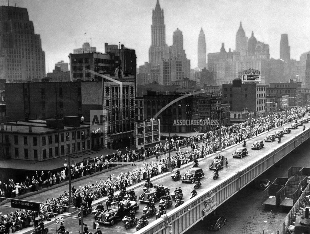 An estimated 2 million people crowded the New York waterfront to watch the King and Queen of the United Kingdom arrive on the destroyer USS Warrington. The royal couple rode up Manhattan’s West Side through Queens and visited the New York World’s Fair. From the deck of an American destroyer flying the royal standard at her masthead for the first time in history, England’s sailor King and Scottish Queen stepped ashore at the Battery yesterday to receive the applause and cheers, if not the homage, of half the people of this, the New World’s greatest city.