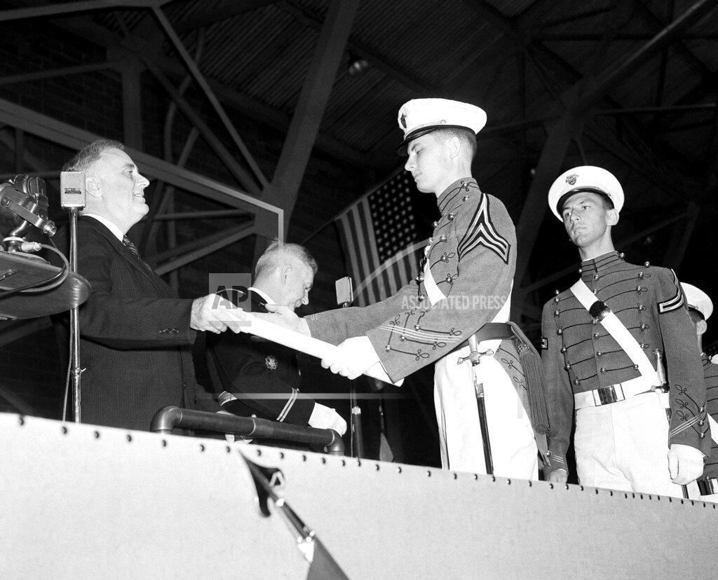 U.S. President Franklin D. Roosevelt told the graduating class of U.S. Army cadets at West Point that the nation’s armed forces should be further strengthened, but he emphasized that the U.S. still desired peace “by honorable and pacific conduct of our international relations.” The Commander in Chief of the army and navy, President Roosevelt, told 456 of West Point’s graduates today that “the nation’s desire for peace must never be mistaken for weakness.” It was the largest graduating class in the academy’s history. In the ceremonies, which departed from tradition in several respects, the President declared that recent international political considerations, dramatically illustrated by the “fate of undefended nations,” had necessitated “still greater emphasis upon the vitalization of our defense,” and urged the cadets to that strength “which comes not from arms alone” but which is “the product of trained and disciplined minds.”