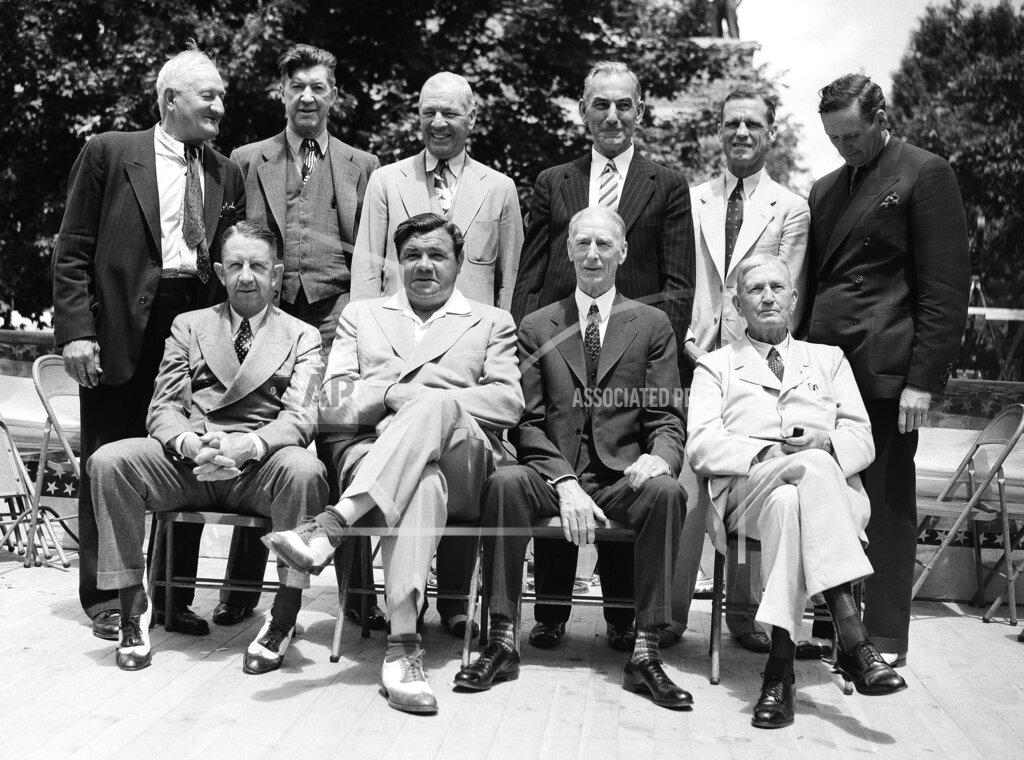 The first Baseball Hall of Fame induction ceremony was held in Cooperstown, New York. 25 inductees had already been named since the induction process began in 1936. All 11 living inductees participated in the inaugural ceremony. The greatest gathering of members and future inductees of the Baseball Hall of Fame assembles in Cooperstown, New York, for the dedication of the museum. A 6-inning game at Doubleday Field showcases lineups studded with players who will be elected in the future. Honus Wagner’s lineup defeats Eddie Collins’ squad, 4–2. Babe Ruth, Ty Cobb, Honus Wagner, Walter Johnson, Grover Alexander, Nap Lajoie, George Sisler, Eddie Collins, Tris Speaker, Cy Young, and Connie Mack accept their plaques. Cobb, angry at Commissioner Landis, shows up after the ceremony and photo taking to accept his plaque. Other inductees, all deceased, include Cap Anson, Charles Comiskey, Candy Cummings, Buck Ewing, Hoss Radbourn, Al Spalding and Wee Willie Keeler.