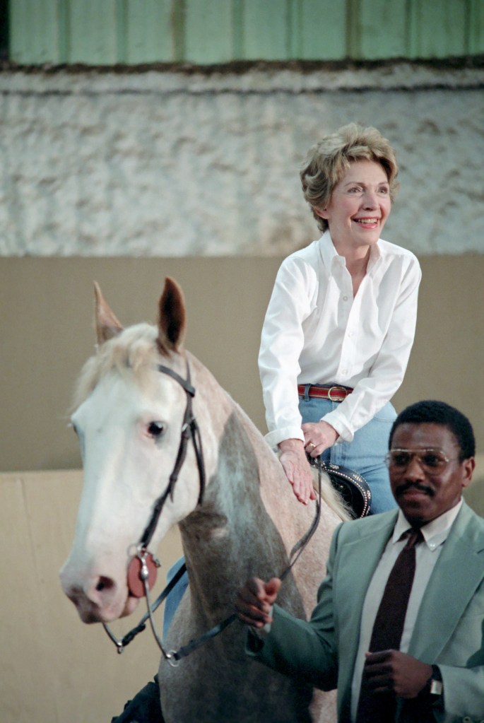 President Reagan presents a White House flag to the U.S. Olympic team for the opening day parade.