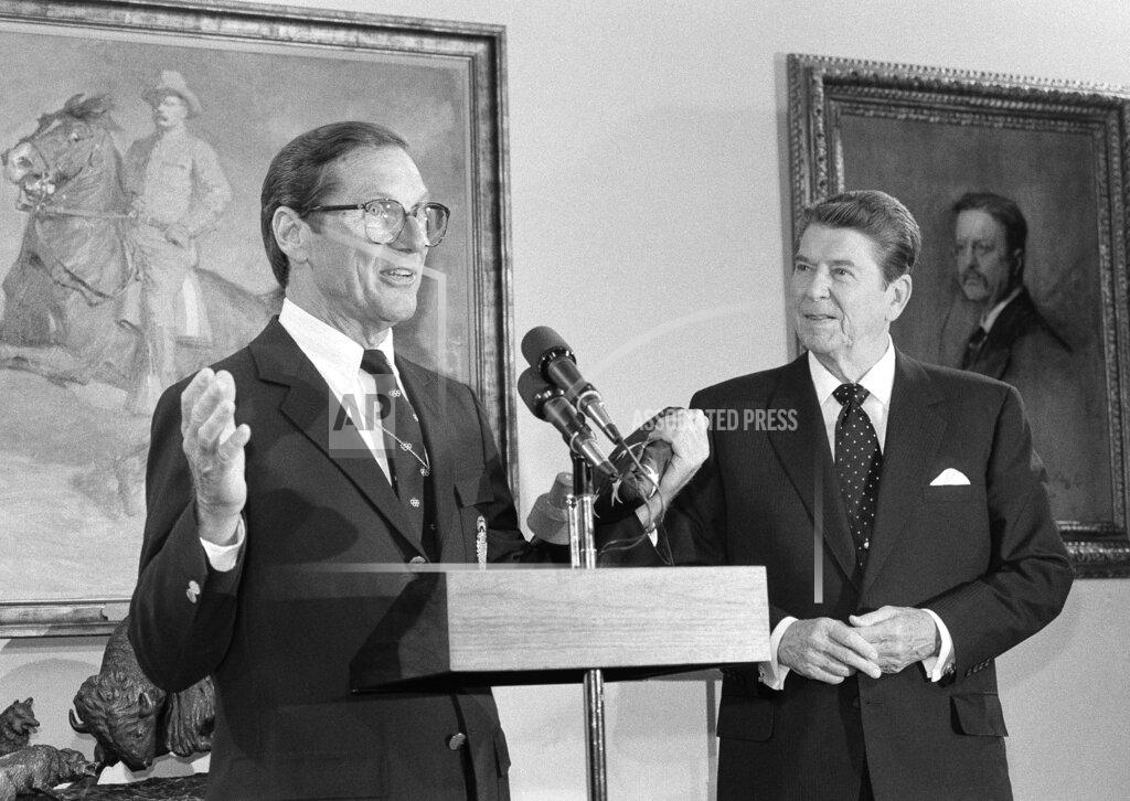 President Reagan participates in a Cabinet Council on Natural Resources and the Environment to discuss rights of offshore drilling.