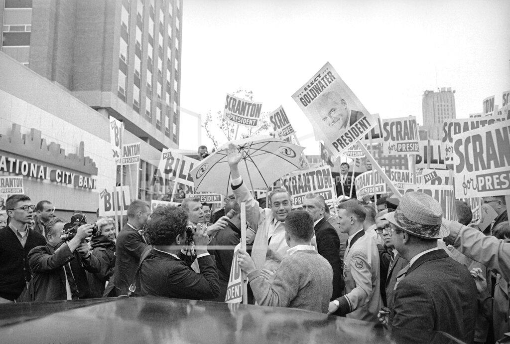 Governor William W. Scranton rode a wave of goodwill into the north central United States tonight, disputing the mathematics that give Senator Barry Goldwater all he needs for the Republican nomination for President. The Pennsylvanian assailed Senator Goldwater for making “devastating” comments on sensitive issues and accused the Johnson Administration of stalling policy decisions on the Vietnam war until after the election. In Iowa and Kansas, where his receptions pleased him, Governor Scranton said he found big holes in the published delegate totals credited to his Arizona rival. He would not identify the delegates by name or specify the number he was counting on in those states to vote for him.