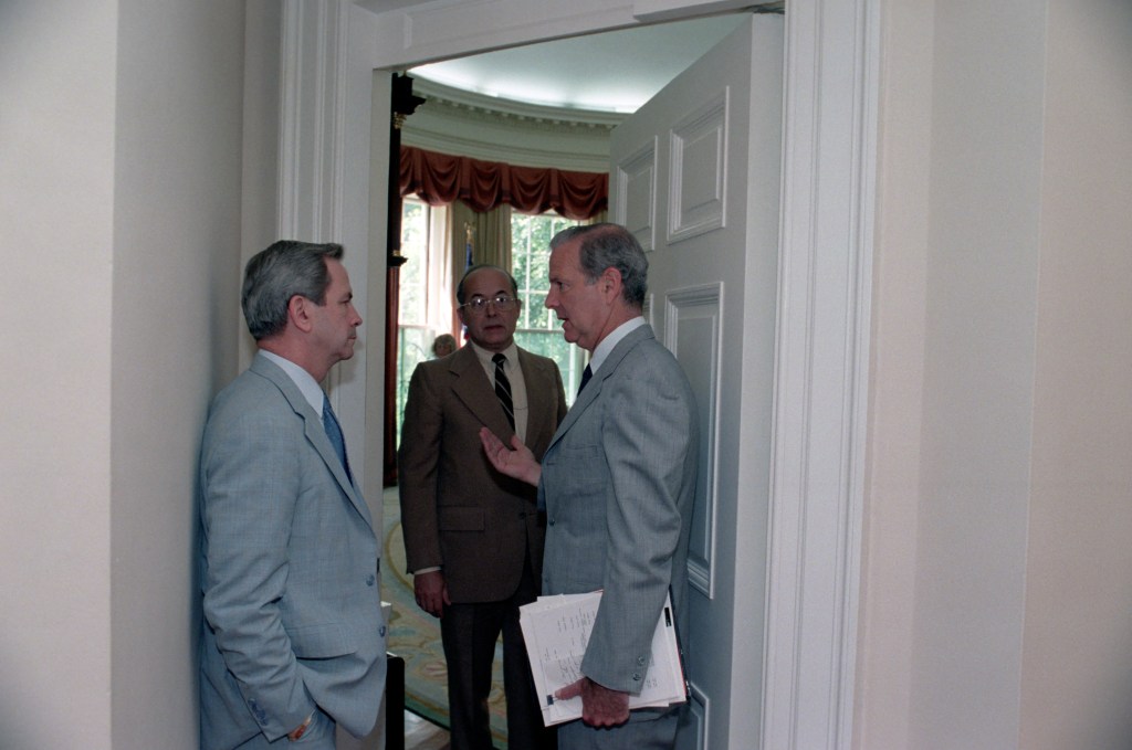 President Reagan meets with several members of his “California kitchen cabinet.”