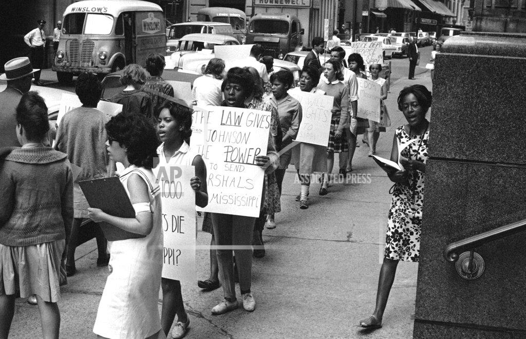 There they marched past the Attorney General, who appeared with Mrs. Medgar W. Evers and the leadership delegation. Mrs. Evers is the widow of the N.A.A.C.P. Mississippi state secretary who was assassinated last year. Mr. Wilkins and his associates informed Mr. Kennedy that, according to their report, the situation in Mississippi had reached a high level of lawlessness with the disappearance of three civil rights workers. They said that only the employment of Federal police powers could guarantee a measure of protection for the Black population and for college students participating in the voter-registration drive.