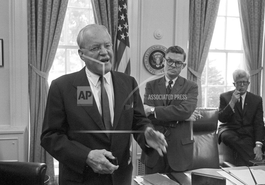 Allen W. Dulles recommended to President Johnson today that more agents of the Federal Bureau of Investigation be sent to Mississippi to help “control and prosecute terroristic activities.” Back from a quick survey of the tense racial situation in that state, Mr. Dulles spent nearly two hours briefing the President. Mr. Dulles former Director of Central Intelligence, was sent to Mississippi Wednesday as the President’s special representative. Mr. Dulles, talking to reporters after his conference with President Johnson, did not specify how many more FBI agents he thought should be assigned to Mississippi. He said that would be up to J. Edgar Hoover, director of the bureau. Spokesmen for the bureau declined to say how many, if any, additional agents would be sent to Mississippi. They also declined to say how many agents were already stationed there.