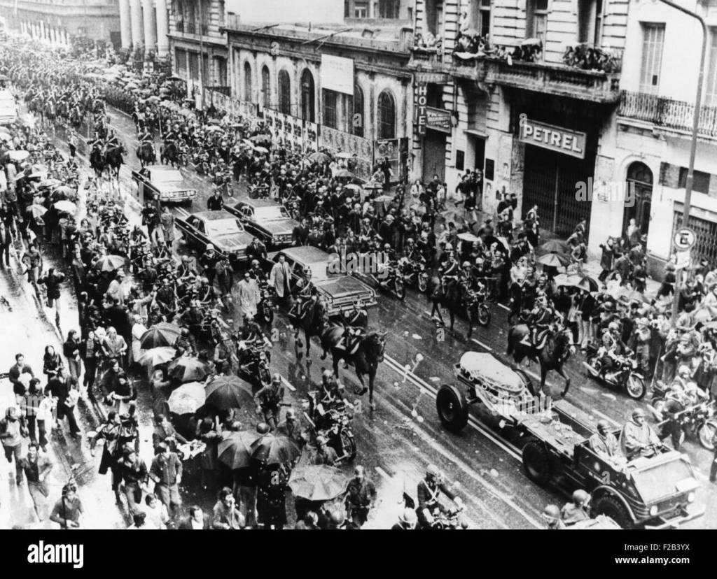 A leader of the Argentine military acted quickly to stifle rumors that the armed forces would never accept the presidency of the politically inexperienced Mrs. Peron, who is legally empowered to complete the three years and three months of her husband’s four-year term as President. The Commander in Chief of the Argentine army vowed at the bier of General Juan Peron that the armed forces would be loyal to his widow. The funeral service for General Peron was held in the Chamber of Deputies in Buenos Aires. The United States delegation was led by Secretary of Commerce Frederick Dent.