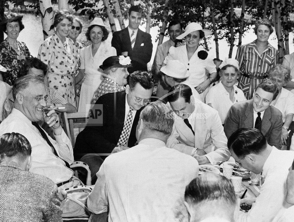 In an impromptu press conference after a lawn party this afternoon, President Roosevelt said he stood for the recommendations sent to Congress months ago by Secretary Hull, in which the Secretary of State asked that the present mandatory arms embargo, which becomes effective on a finding that a state of war existed, should be lifted.
