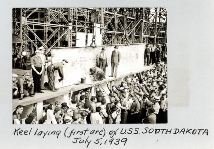 The U.S. Navy battleship USS South Dakota (BB-57), lead ship of her class of 4, is laid down by the New York Shipbuilding Corporation shipyard (Camden, New Jersey, U.S.A.).