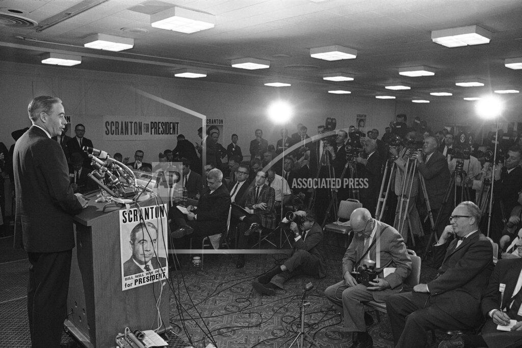 Senator Scott said the group would push a number of planks in the Platform Committee, specifically the Scranton proposal on civil rights and extremist groups. Others insisted that the group was interested in pushing issues, not just advancing the Scranton candidacy. Representative Conte charged the Goldwater supporters with trying to railroad their version of a party platform through the Platform Committee. He said the Goldwater supporters were being given the key committee positions by “undemocratic” means. Mr. Conte said he had reason to believe the platform had already been drafted. He promised a fight on the floor of the convention if he could make no headway in the committee.