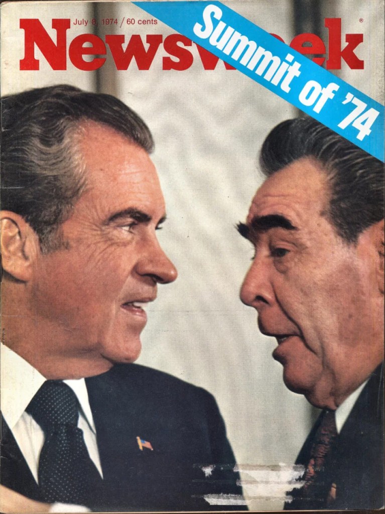 President Nixon met for more than an hour today with Vice President Ford to report on the Soviet Summit talks and to discuss unspecified domestic issups, a spokesman said. The 75‐minute meeting in the Oval Office was Mr. Nixon’s first appointment of the morning in the White House, where he has spent only two full days in the last month. The President wound up busy day by taking some advisers out for an evening cruise on the Potomac. The White House said Mr. Nixon, General Alexander M. Haig Jr., the White House chief of staff, Kenneth Rush, the President’s economic counselor, and. Major General Brent Scowcroft, a special adviser on national security affairs, went out on the Presidential yacht Sequoia to have a general discussion of international economic matters.