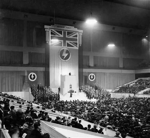 British Fascist leader Sir Oswald Mosley gave a speech in the Earls Court Exhibition Centre attended by over 20,000 people. He presented a plan that he said would “bring peace in our time and our children’s time” that called for a hands-off policy in Eastern Europe, disarmament in Western Europe, return of colonies to Germany and for the British Empire to concentrate on its own affairs. “Why is it a moral duty to go to war if a German kicks a Jew across the Polish frontier?” Mosley declared. “We are going, if the power lies within us… to say that our generation and our children shall not die like rats in Polish holes.” Mosley declares that one million British Fascists will refuse to fight in a “Jewish war.”