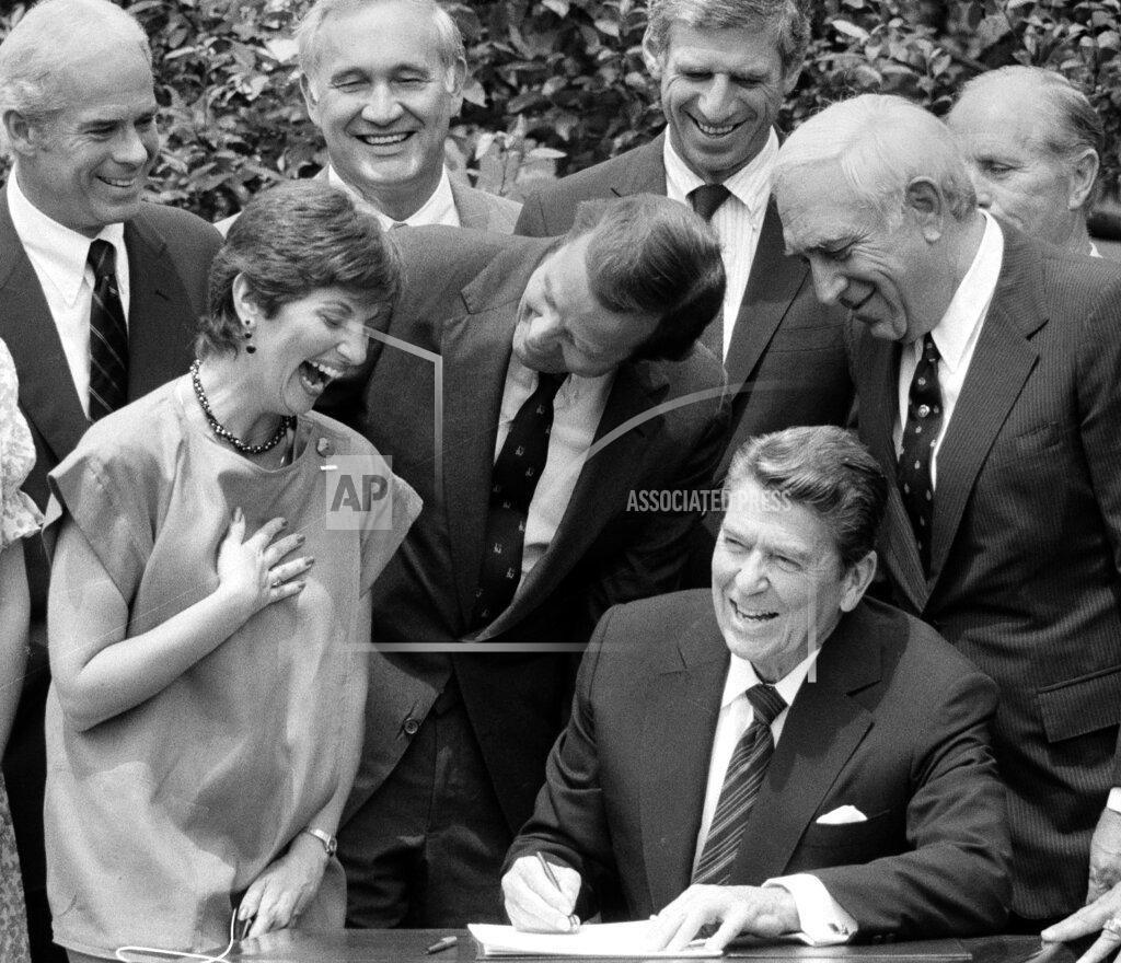 President Reagan participates in a signing ceremony for H.R. 4616, legislation encouraging states to raise their minimum drinking age to 21. The U.S. enacts the National Minimum Drinking Age Act, prohibiting under-21’s from buying or possessing alcohol as a condition of receiving federal highway funds. Federal highway funds would be cut for states that did not raise the drinking age to 21 under legislation signed by President Reagan. At the ceremony, he urged cooperation in ending “the crazy quilt of different states’ drinking laws.”