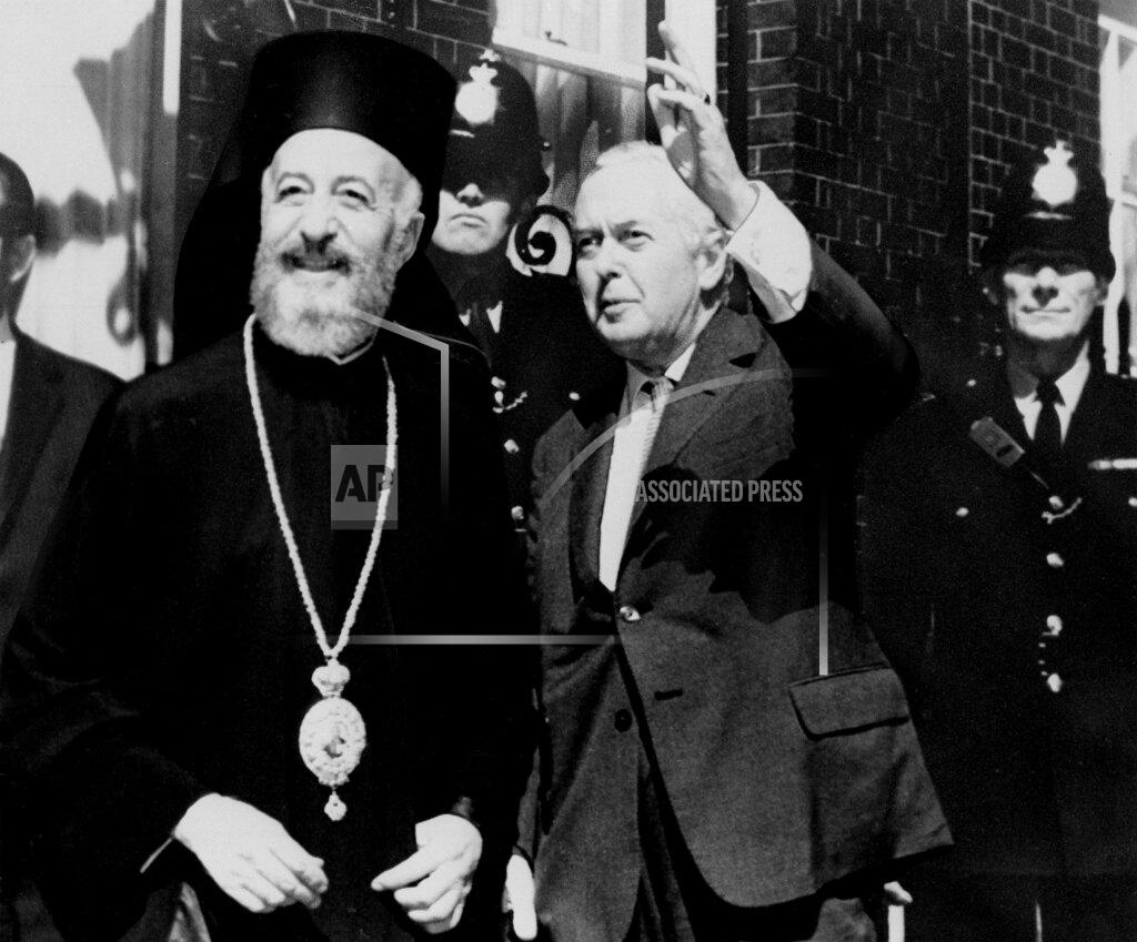 Archbishop Makarios and Premier Bulent Ecevit of Turkey conferred separately in London with Prime Minister Harold Wilson and Foreign Secretary James Callaghan, trying to work out a common approach to reverse the Cyprus coup. Britain is reluctant to use more than diplomatic pressure on Greece. Word that the United States is dropping Archbishop Makarios adds another complication.