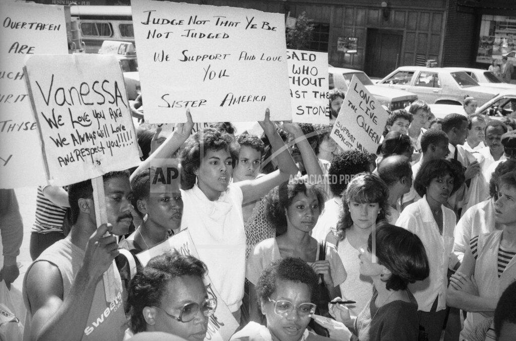 Vanessa Williams relinquished her Miss America title, saying that publication of nude photographs of her with another woman made the prospect of remaining in that post too difficult. Miss Williams said she would reluctantly abide by the pageant officials’ request that she step down to avert “potential harm to the pageant and the deep division that a bitter fight may cause.”
