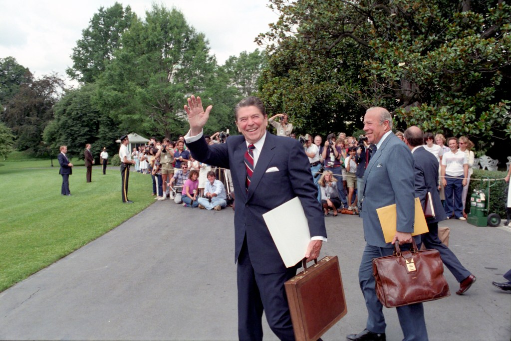 President Reagan leaves the Olympic celebration for Rancho del Cielo.