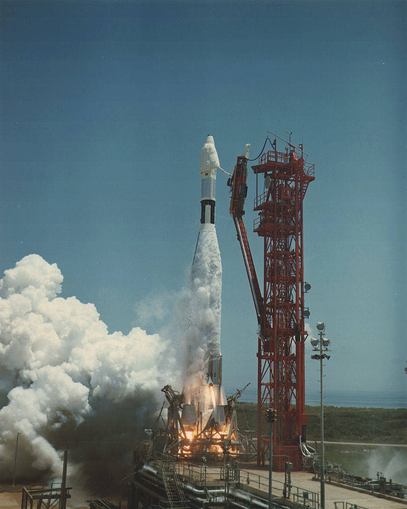 Ranger 7 was successfully launched toward the Moon from Cape Kennedy. The Ranger spacecraft carrying six television cameras was launched today on a scheduled 68‐hour flight to the moon. The cameras were set to take and relay to earth some still pictures of the lunar surface. They are to operate during the last 15 minutes before the vehicle crashes into the moon Friday morning. The launching was so accurate that, even without the standard mid‐course correction maneuver, the spacecraft, named Ranger 7, was on a collision course with the moon. But the predicted impact point was on the left‐hand back side, as viewed from earth. So plans were going ahead to fire a mid‐course rocket to bring the picture‐taking and impact area to the front side.