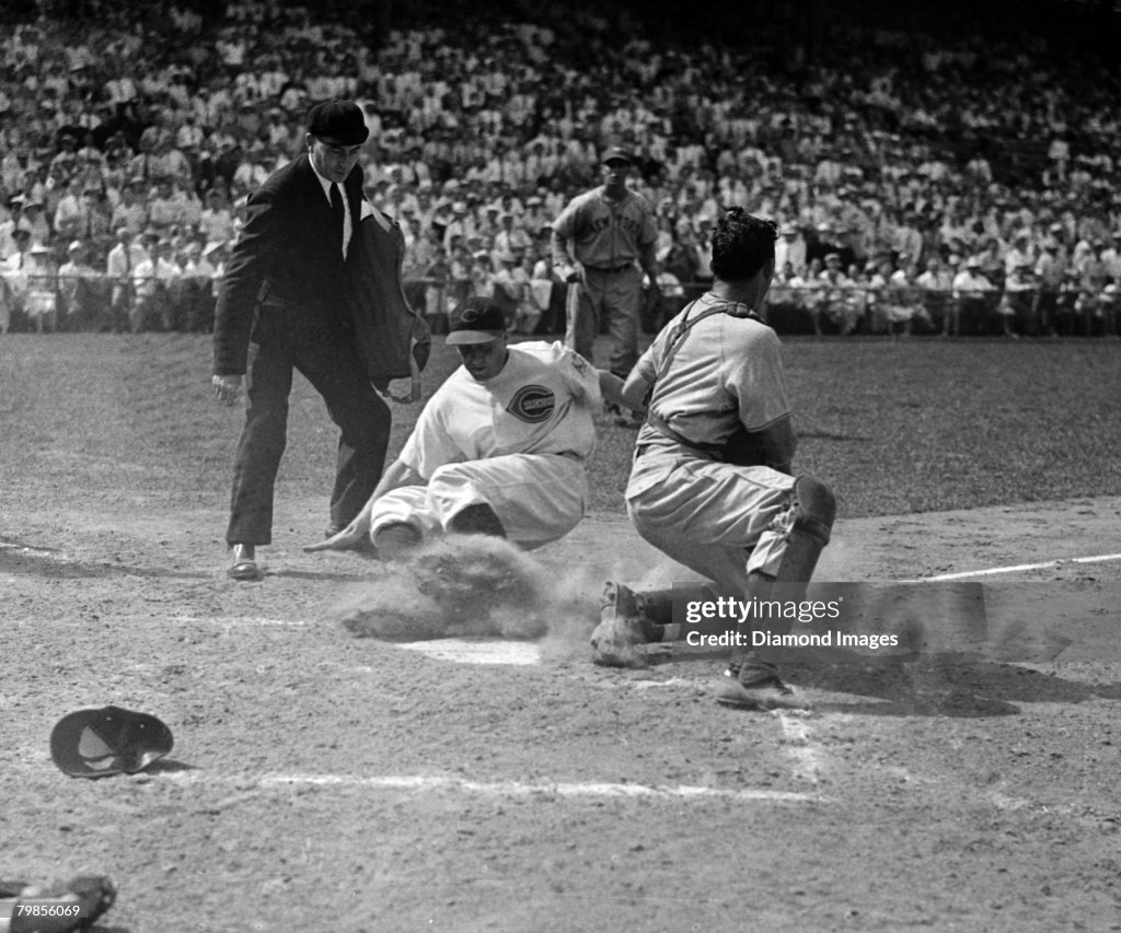 Harry Danning had three hits, including a triple and a tenth-inning single that gave the New York Giants a 5–4 win over the Cincinnati Reds.