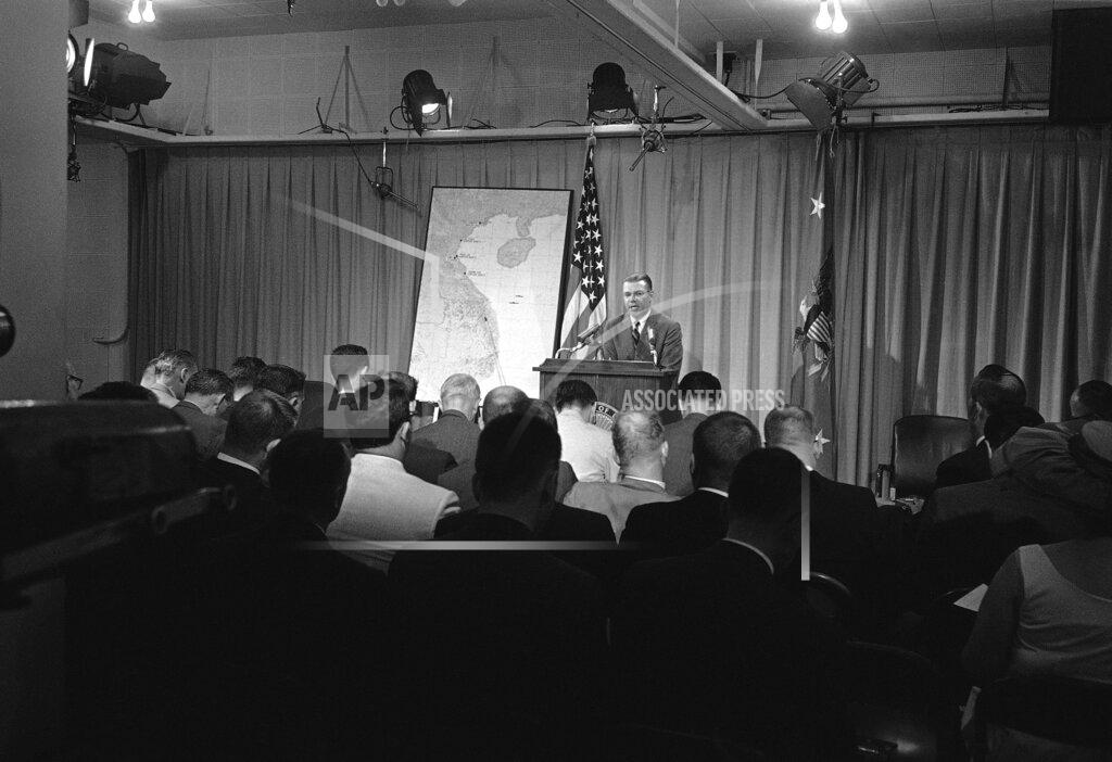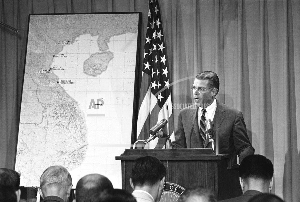 Defense Secretary McNamara and Secretary of State Rusk appear before a joint Congressional committee on foreign affairs and present the Johnson Administration’s arguments for a resolution authorizing the president ‘to take all necessary measures.’ Senator Wayne Morse (D-Oregon) has received a tip from an officer in the Pentagon that the Maddox had been engaged in certain covert actions against North Vietnam, but when Morse asks if there was any link between the U.S. ship and the South Vietnamese raids, McNamara replies flatly, ‘Our Navy played absolutely no part in, was not associated with, was not aware of, any South Vietnamese actions, if there were any. Morse is unable to win over any of his colleagues. When the Senate begins to debate on the resolution, only Senator Ernest Gruening (D-Alaska) joins Morse in opposing it. McNamara gives a news conference at which he denies U.S. naval involvement in any South Vietnamese raids. He admits that China may now provide fighter planes to North Vietnam but he sees no sign of a general Chinese or Communist military response to the U.S. raids.