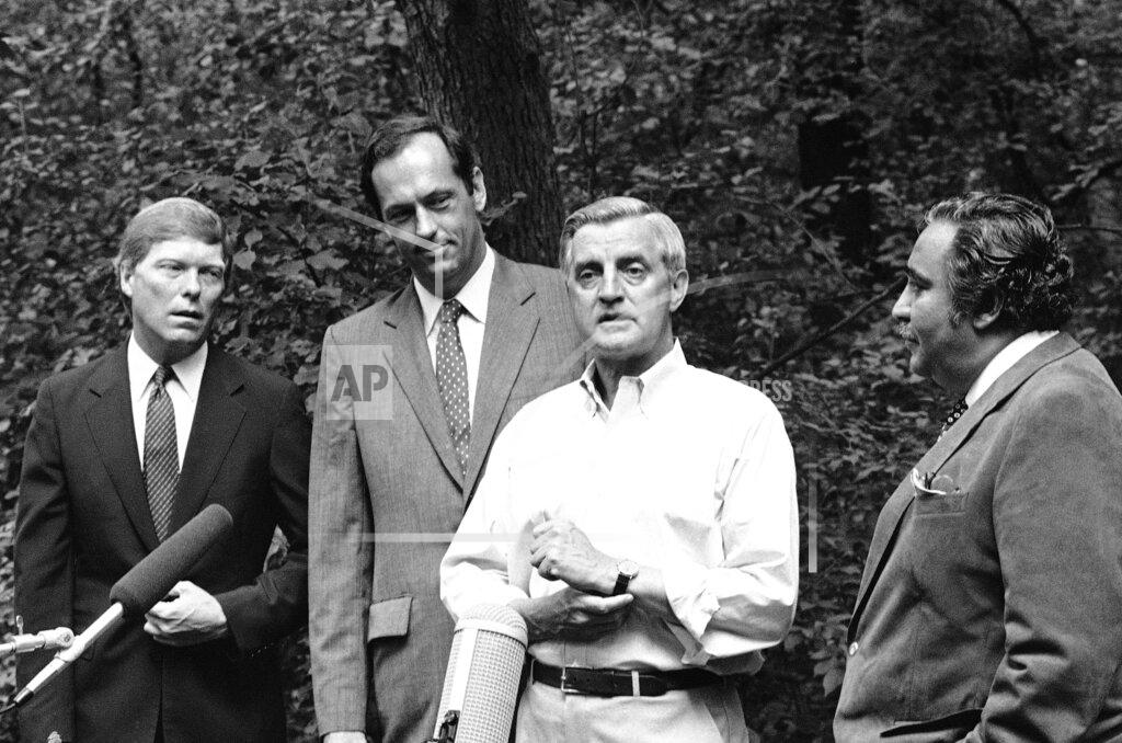 President Reagan receives a call from Secretary of the Interior William P. Clark.